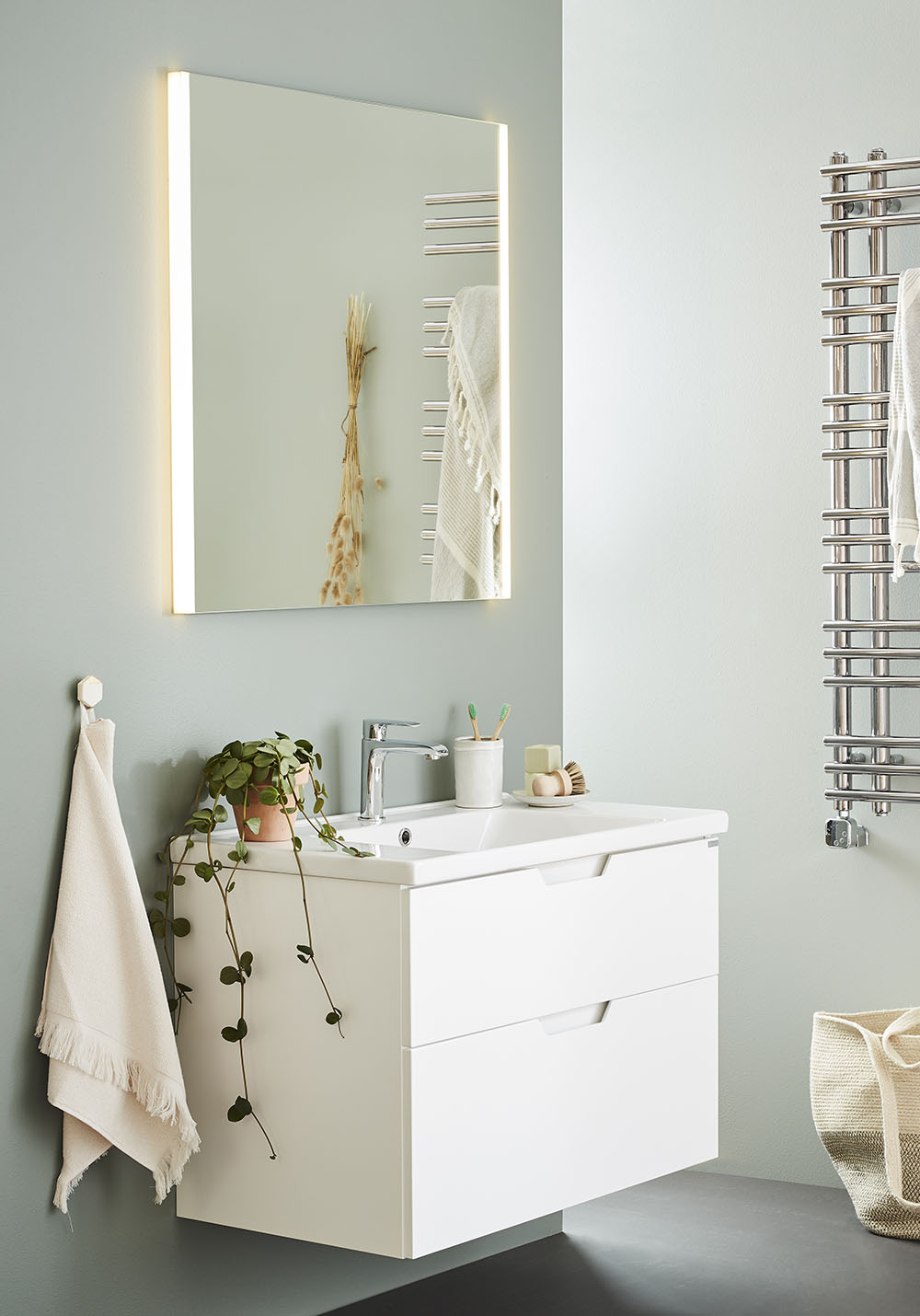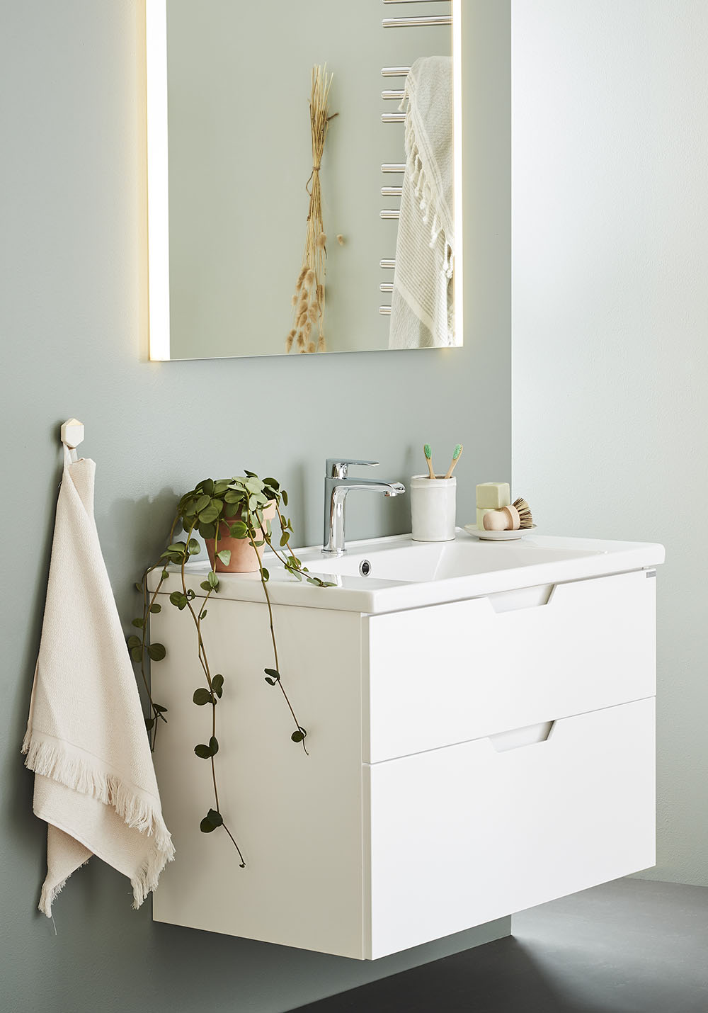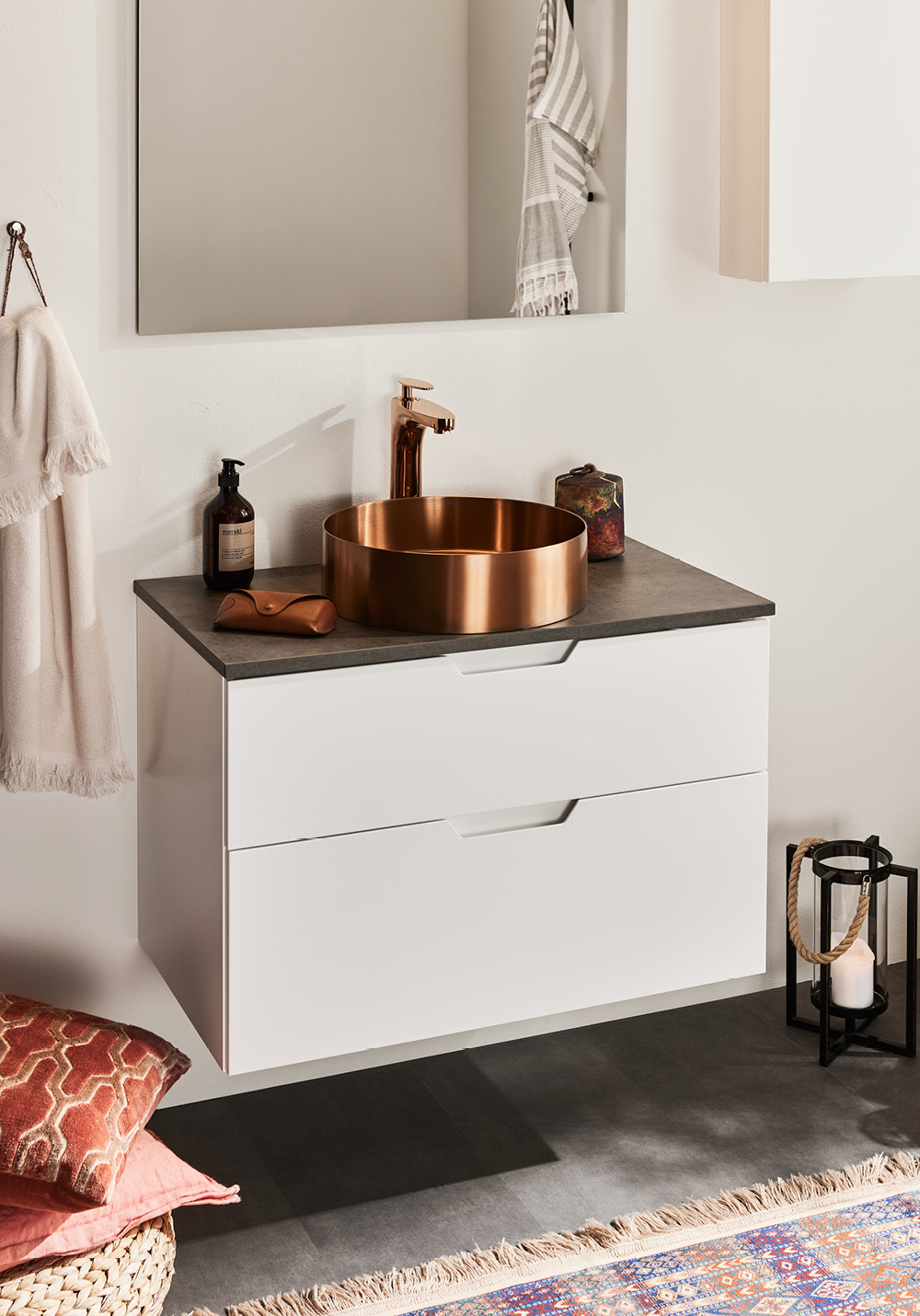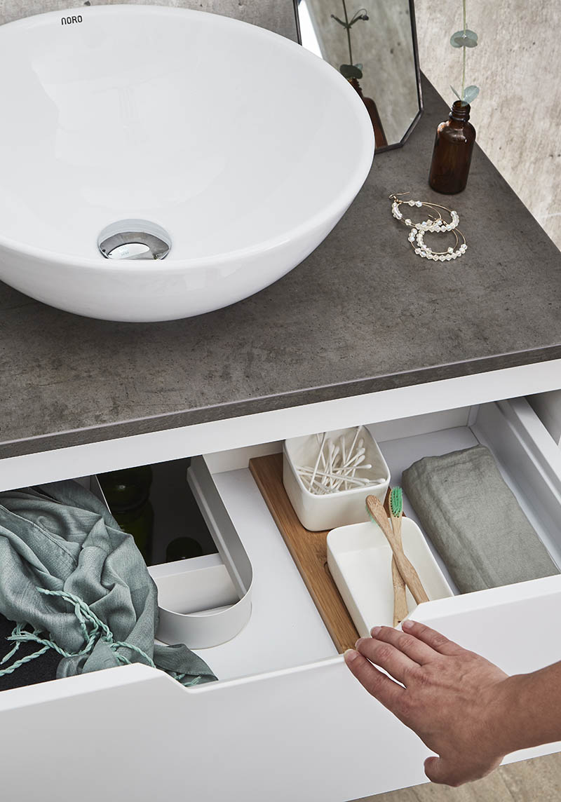 - Removable drawer mat and drawer interior in bamboo and porcelain